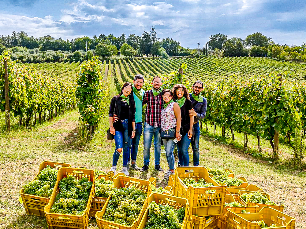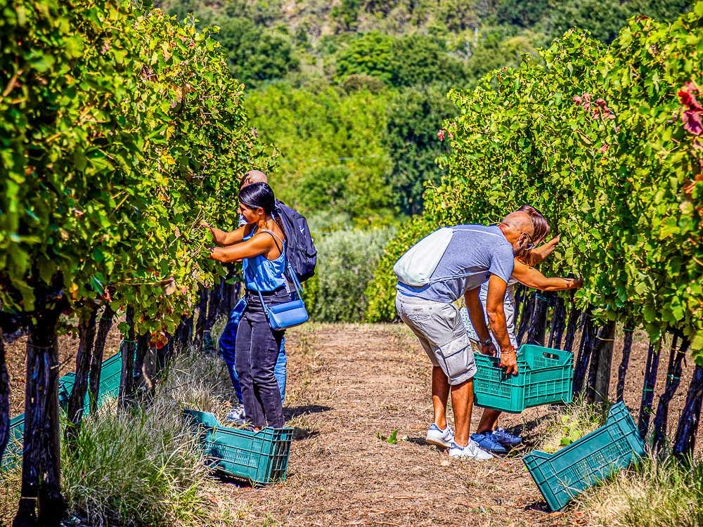 Aansluitend volgt een briefing ter voorbereiding op de oogst en een wandeling naar de wijngaarden waar je deelneemt aan de druivenoogst. Je wandelt door de wijngaarden en olijfboomgaarden waarna je een wijnproeverij krijgt aangeboden van de wijnen van het wijndomein.