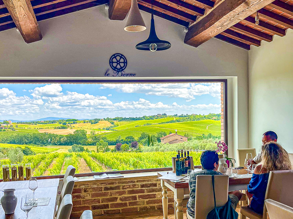 Het laatste deel van de rondleiding brengt je naar de proefruimte met uitzicht op de wijngaarden. Hier krijg je de mogelijkheid om de beste wijnen van dit kleinschalige wijndomein te proeven. Direct door wijnmakers geserveerd. Je krijgt in totaal 6 wijnen aangeboden waaronder IGT, DOC en verschillende DOCG’s gelabelde wijnen en een VinSanto. Elke wijnproeverij wordt vergezeld van Toscaans brood en olijfolie.